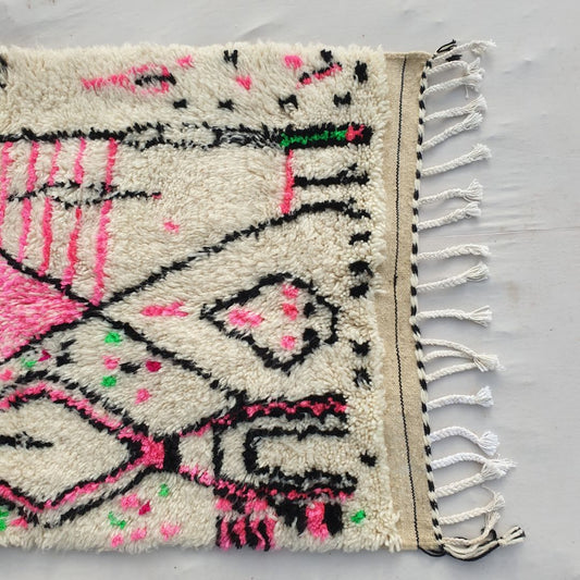 Tiwla | White & Pink Moroccan Rug 3x5 Beni Ourain Ultra Soft | 3'74x5'51 Ft | 114x168 cm