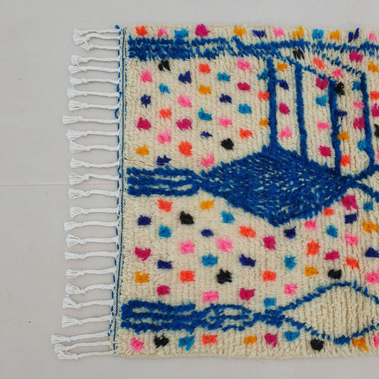 Marjana | Beni Ourain Moroccan Rug 3x5 ft Cobalt Blue Checkered | 3'44x5'12 Ft | 105x156 cm
