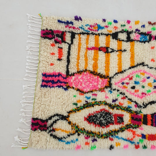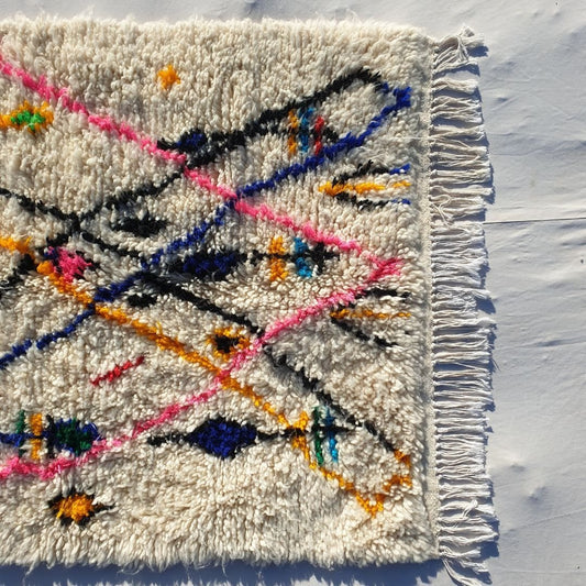 Jrabaa - Small Moroccan Rug White Azilal | Authentic Handmade Berber Moroccan Bedroom Rug | 2'66x4'50 ft | 81x137 cm