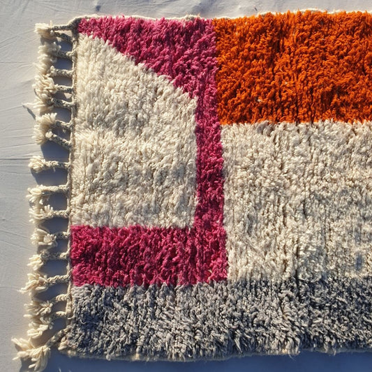 Balhaia | Orange & Beige Moroccan Rug 3x5 Beni Ourain Ultra Soft | 3'67x5'61 Ft | 112x171 cm