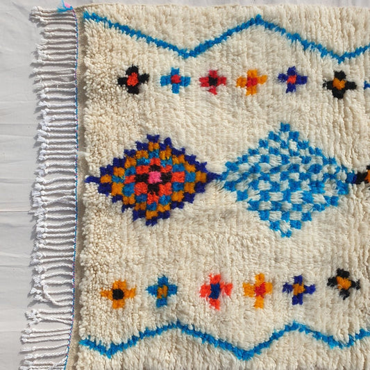 Tembka- White Moroccan Rug 3x4 Azilal | Authentic Handmade Berber Living room Rug | 97x137 cm | 3'20x4'50 ft