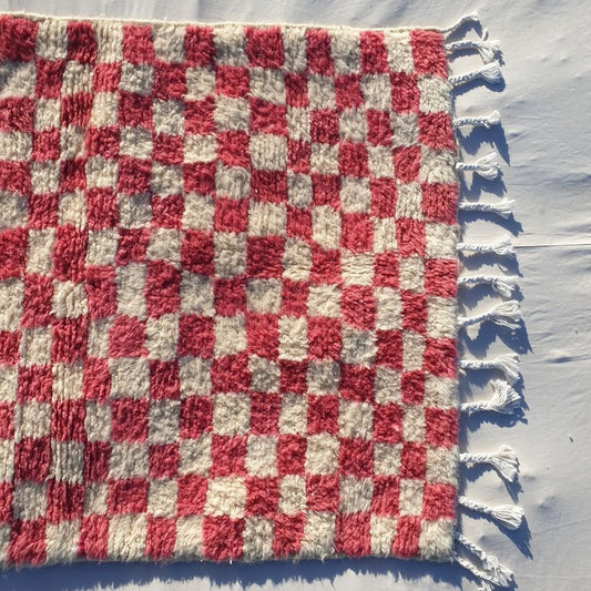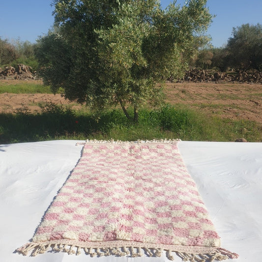 Daima | Pink Checkered Rug 3x5 Moroccan Berber Beni Ourain | 3'41x5 Ft | 100x152 cm