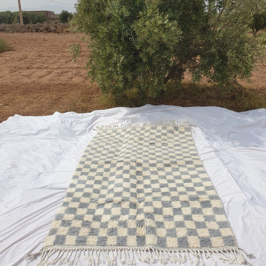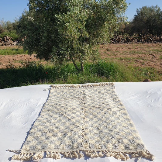 Laboua | Checkered Beni Ourain 3x5 Moroccan Rug Berber | 3'48x4'89 Ft | 106x150 cm