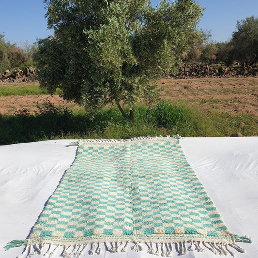 Dama | Checkered Moroccan Rug Green Turquois Beni Ouarain | 8'3x5'4 Ft | 2,54x1,66 m | Handmade with 100% Authentic wool