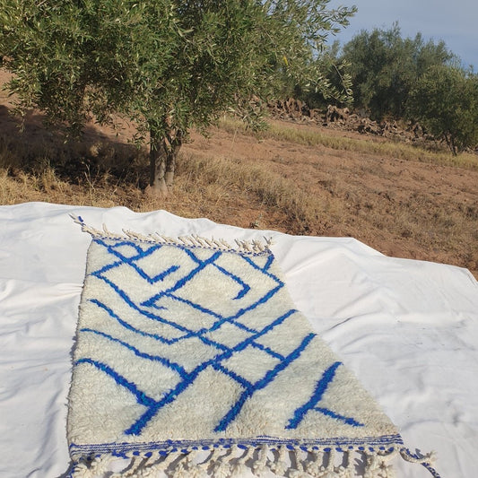 BENI OUARAIN RUG White Bedroom Carpet | Moroccan High Pile Area Rug Berber Authentic Wool | 5'1x3'3 Ft | 155x101 cm
