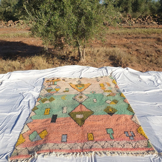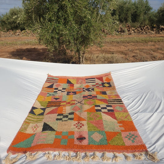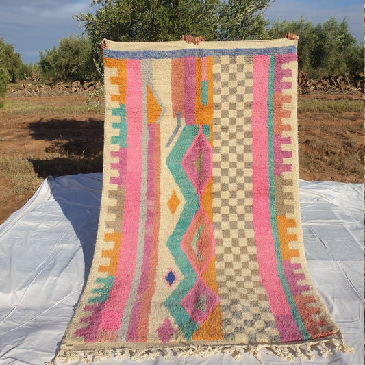 MOROCCAN BOUJAAD RUG | Moroccan Berber Rug | Colorful Rug Moroccan Carpet | Authentic Handmade Berber Bedroom Rugs | 8x5 Ft | 2,43x1,52 m