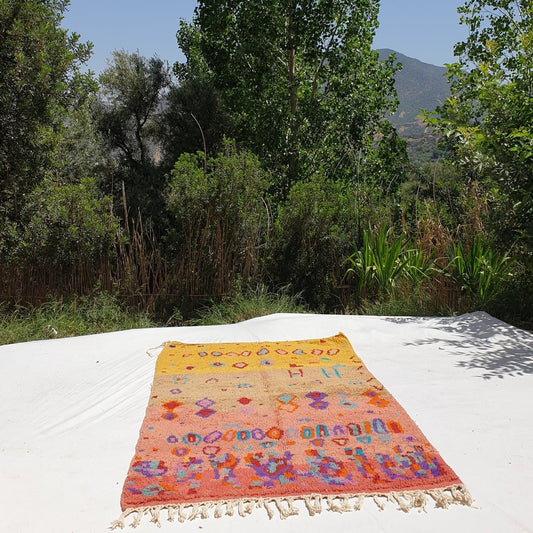 From yellow Moroccan rugs to rainbow lattice designs, our Azilal rugs brighten living rooms or hallways as vibrant Moroccan runner rugs. Each unique piece showcases the weaver’s creativity, perfect for boho-chic spaces. Explore colorful Azilal rugs now.