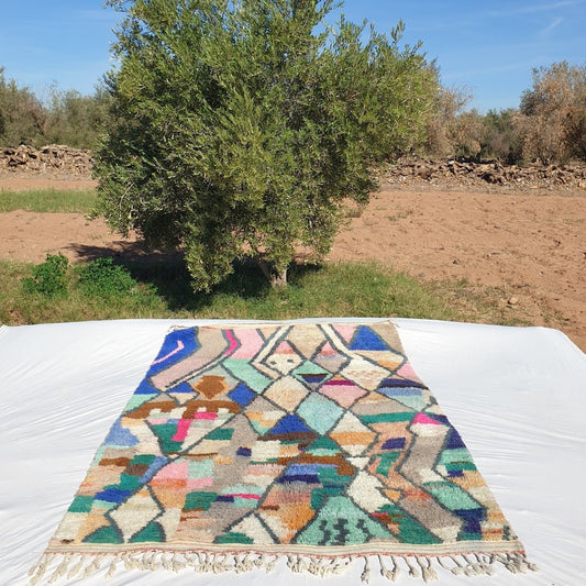MOROCCAN BOUJAAD RUG | Moroccan Berber Rug | Colorful Rug Moroccan Carpet | Authentic Handmade Berber Bedroom Rugs | 8x5 Ft | 2,42x1,54 m