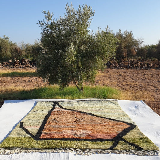 Loun | Beni Mrirt Moroccan rug Green Ultra Soft & Thick | 9x12 Ft | 369x294 cm | Moroccan Colorful Beni Mrirt Rug | 100% wool handmade
