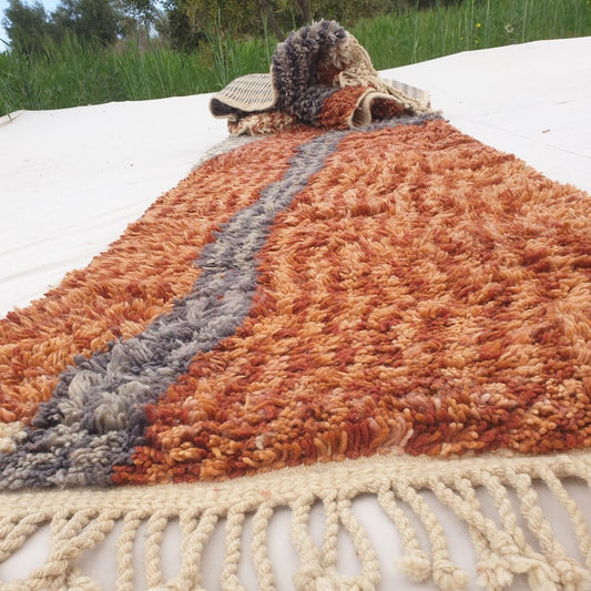 Lilaba | Orange 5x7 Moroccan Rug Authentic Soft Beni Ourain | 4'92x7'74 Ft | 150x2236 cm