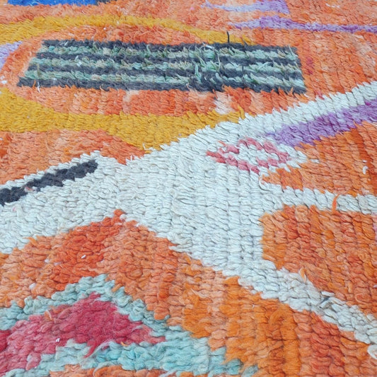 Wahlee - Orange & Peach 6x9 Berber Boujad Moroccan Rug | Authentic handmade Moroccan Carpet | 6'59x9'94 Ft | 201x303 cm