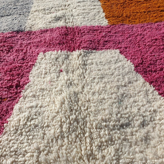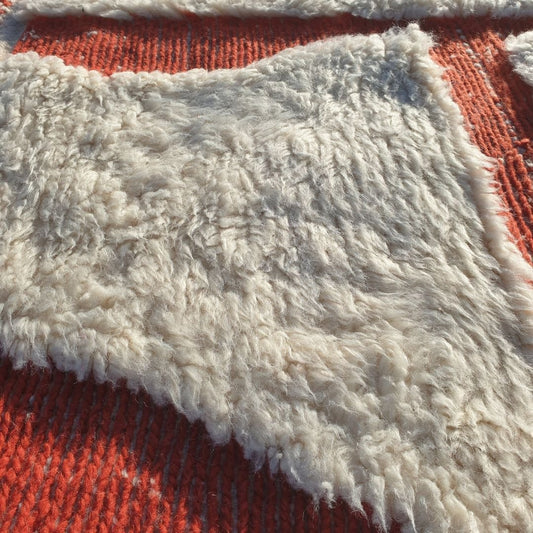 Our orange Moroccan rugs are crafted with premium wool, featuring shades like burnt orange, light orange, and bright orange that evoke Morocco’s vibrant energy. Handwoven by Berber women, these orange Berber rugs showcase geometric and abstract patterns, reflecting tribal heritage. Ideal as orange living room rugs or orange bedroom rugs, they add warmth and sophistication. OunizZ partners directly with weavers for fair wages, ensuring each orange area rug is an authentic masterpiece. Try our Berkana Orange Beni Ourain Moroccan Rug 7x10 for a stunning orange and white checkered rug.