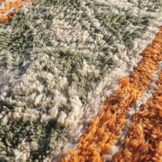 Hiabi | Beige & Orange Moroccan Rug 3x6 Beni Ourain Ultra Soft | 3'58x6'13 Ft | 109x187 cm