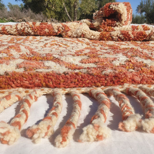 Elevate your home with the radiant energy of orange Moroccan rugs at OunizZ, handwoven by Berber artisans in Morocco’s Atlas Mountains. Our orange rug collection features vibrant burnt orange, cheerful light orange, and bold bright orange rugs, perfect as orange area rugs for living rooms, bedrooms, or nurseries. These handwoven orange Berber rugs blend intricate patterns with plush wool, offering an orange boho rug vibe that’s both cozy and stylish. Shop our orange Moroccan rug collection with free shipping and transform your space with fiery elegance!