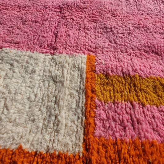 Rjani - Vibrant Pink Orange Boujad Rug 6x9 ft - Handwoven Colorful Moroccan Berber Area Rug for Boho Living Room | 6'30x9'88 Ft | 192x301 cm