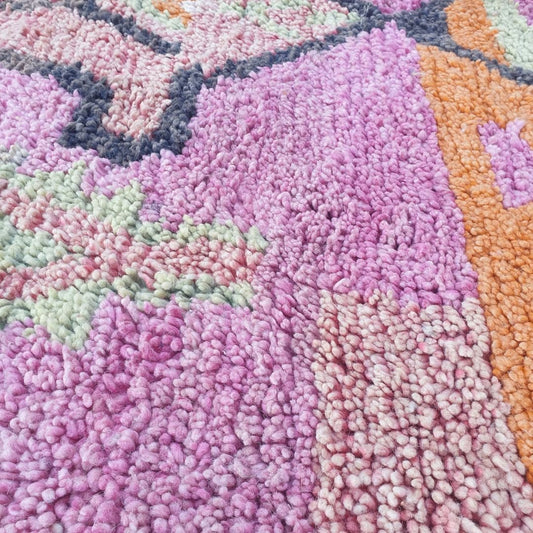 Chalata | Pink & Orange Moroccan Rug Authentic Soft Beni Ourain | 4'72x8'10 Ft | 144x247 cm
