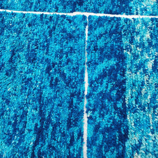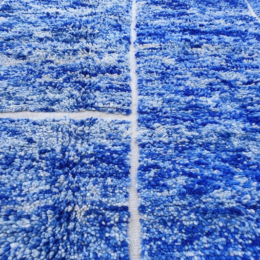 FIFLA | Blå marokkansk tæppe 6x9 Soft Beni Ourain | Håndlavet Berber Wool Carpet | 6'56x9'80 ft | 200x299 cm