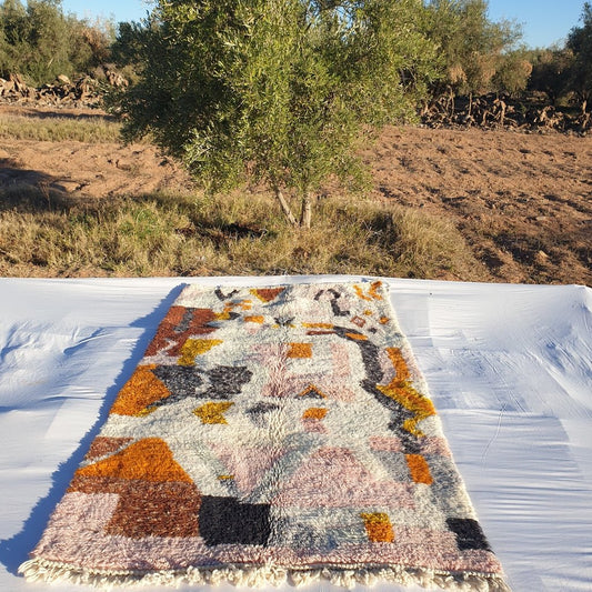MAROKKANSK BOUJAAD Dæppe | Marokkansk berbertæppe | Farverigt tæppe marokkansk tæppe | Autentiske håndlavede Berber-tæpper | 9'1x5'2 Ft | 2,76x1,60 m