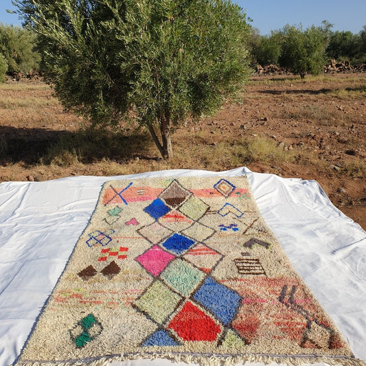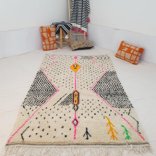 Likana - BENI OUARAIN Marokkansk hvidt tæppe til soveværelse | Marokkansk højluvet tæppe berber autentisk uld | 5'6x3'7 Ft | 171x112 cm
