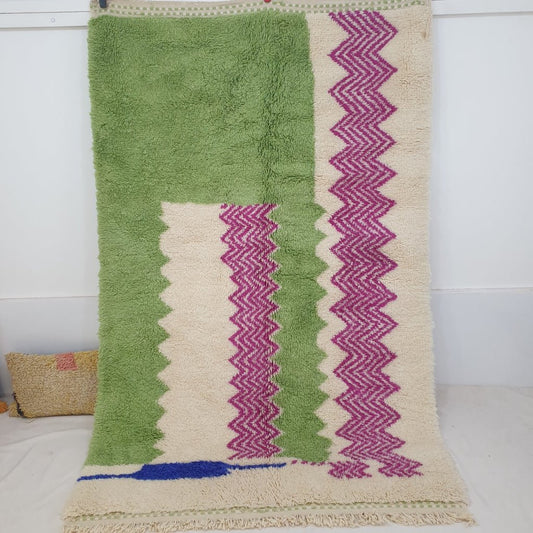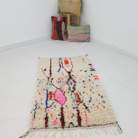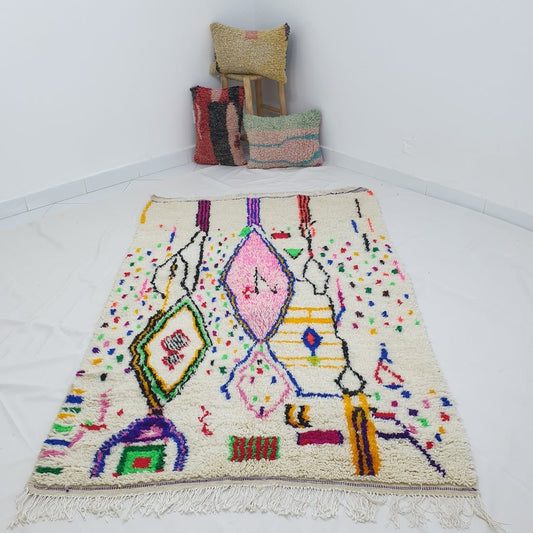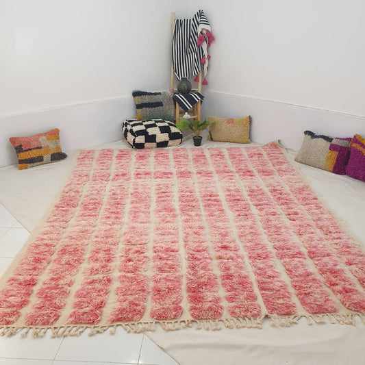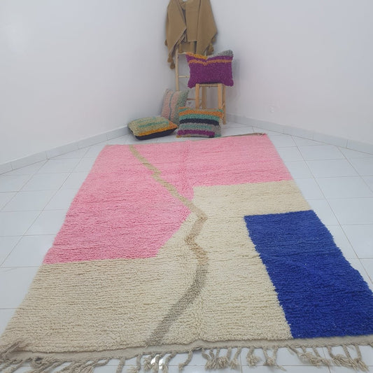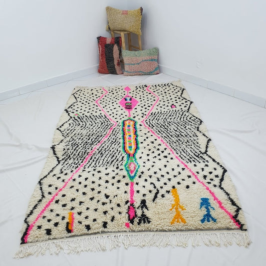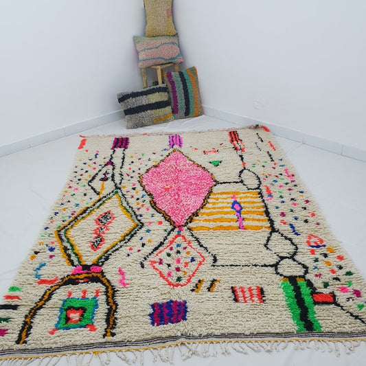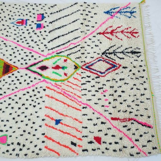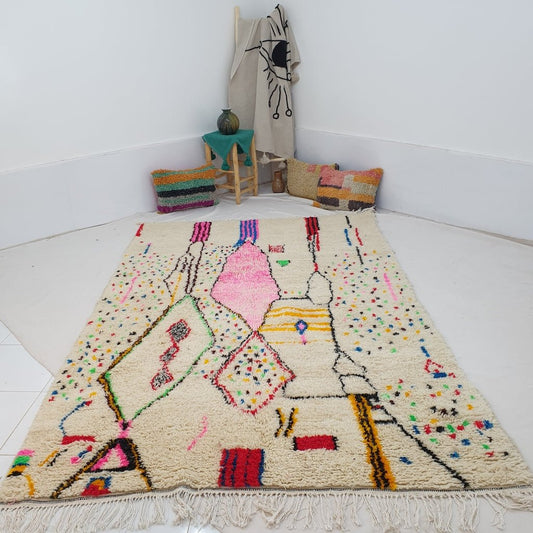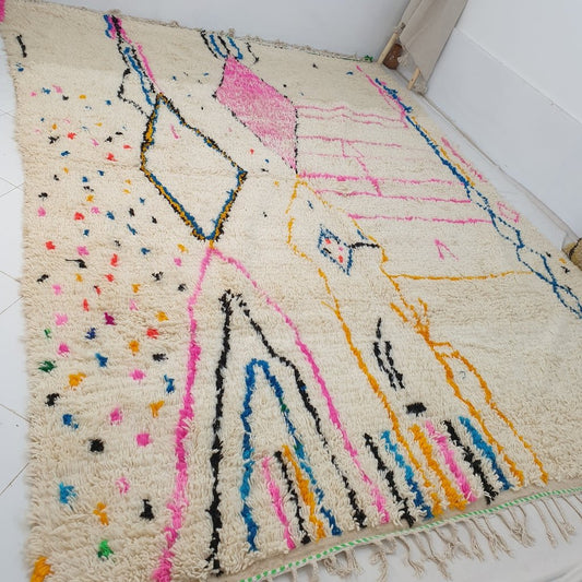 Ultra Fluffy marokkansk Beni tæppe | 9'4x6'7 Ft | 2,86x2 m | BKIRA | Marokkansk farverigt Beni Mrirt tæppe | 100% uld håndlavet