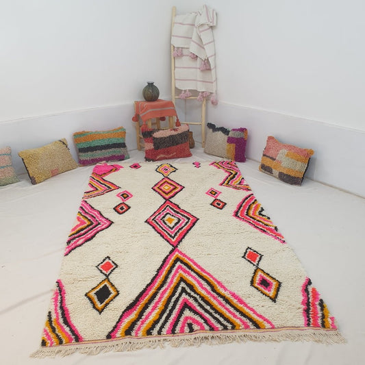 KHITA | 9x5'5 Ft | 2,73x1,68 m | Marokkansk farverigt tæppe | 100% uld håndlavet