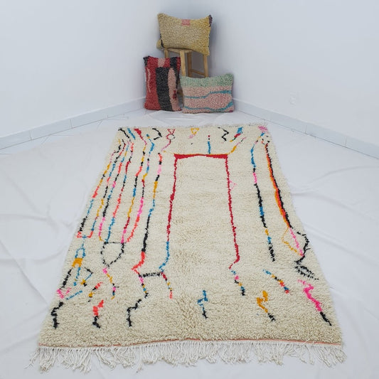 Marokkansk hvidt tæppe Azilal | MINUJA | 5'3x3'1 Ft | 1,63x0,95 m | 100% uld håndlavet
