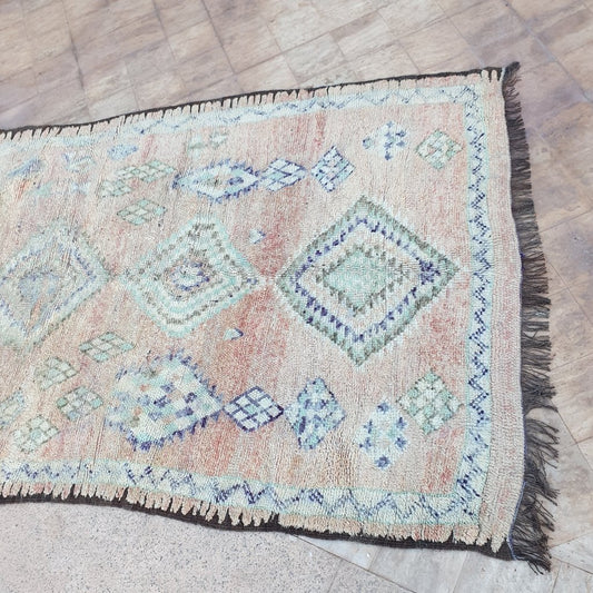 Mzena - Vintage marokkansk fersken 6x9 tæppe | Autentisk Berber håndlavet tæppe | 9'8x6'3 Ft | 200x300 cm