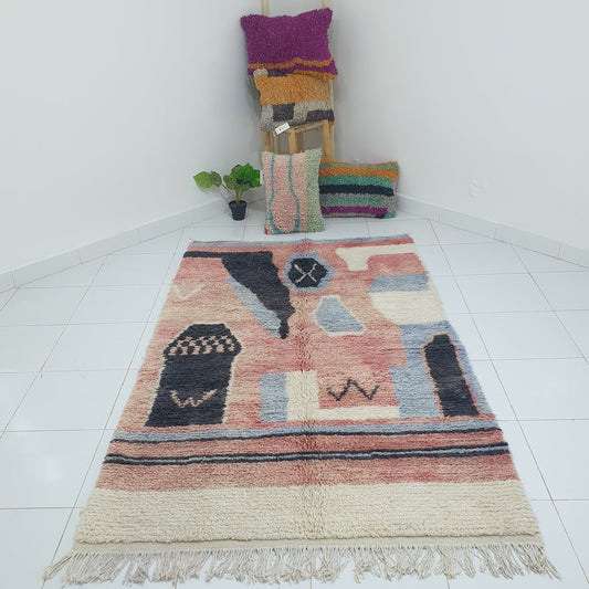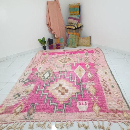 SEROS - MAROKKANSK DÆPPE 5x8 BOUJAAD Autentisk Berber-tæppe | Håndlavet soveværelse tæppe | 8'2x4'7 Ft | 2,51x1,44 m