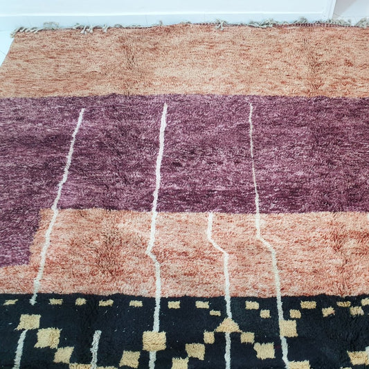 Dama | Ternet marokkansk tæppe Pink Beni Ouarain | 8'5x5 Ft | 2,60x1,54 m | Håndlavet med 100% autentisk uld
