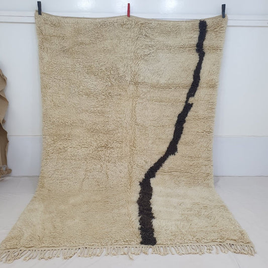 Skræddersyet marokkansk Beni tæppe Ultra Soft & Thick Cream Stue Tæppe | 10'x7' Ft | NAKA | Marokkansk Beni Mrirt tæppe
