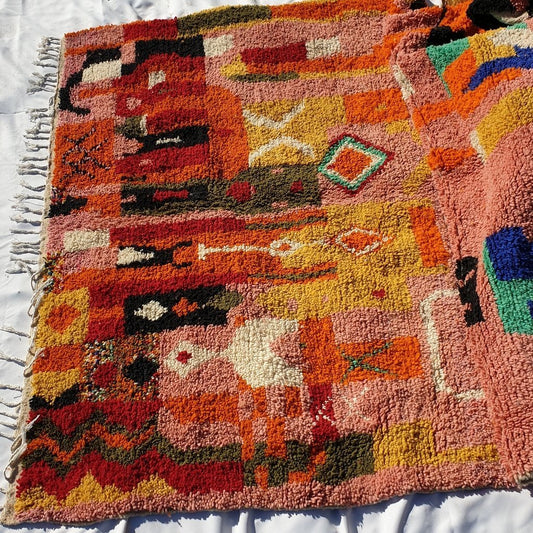 Tilpasset marokkansk tæppe Pink Orange Boujaad | 3,5x2,5 m | BIDOUH | 100% uld håndlavet