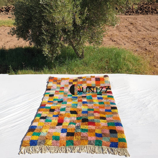 Skræddersyet MAROKKANSK BOUJAAD tæppe | Marokkansk berbertæppe | Farverigt tæppe marokkansk tæppe | Autentiske håndlavede Berber-tæpper | 80"x52"
