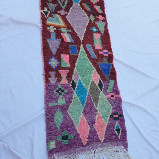 DIRKA Løber | 9'3x2'6 Ft | 2,84x0,78 m | Marokkansk farverigt tæppe | 100% uld håndlavet