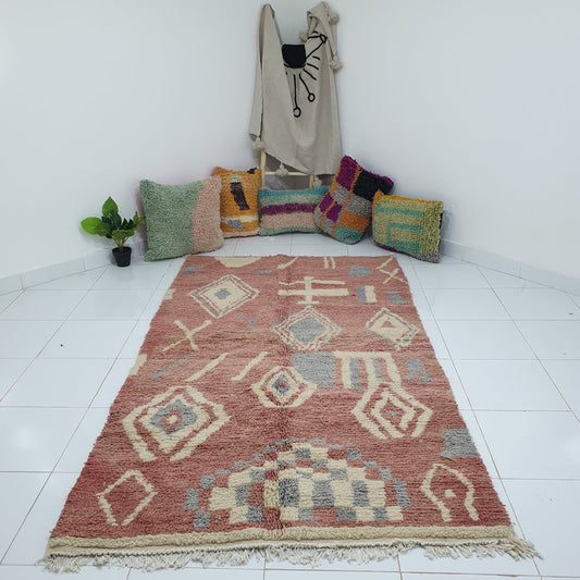 Akar - Pink Boujad marokkansk tæppe 5x8 | Autentisk håndvævet Berber-uldtæppe | 8'2x5'2 Ft | 2,50x1,58 m