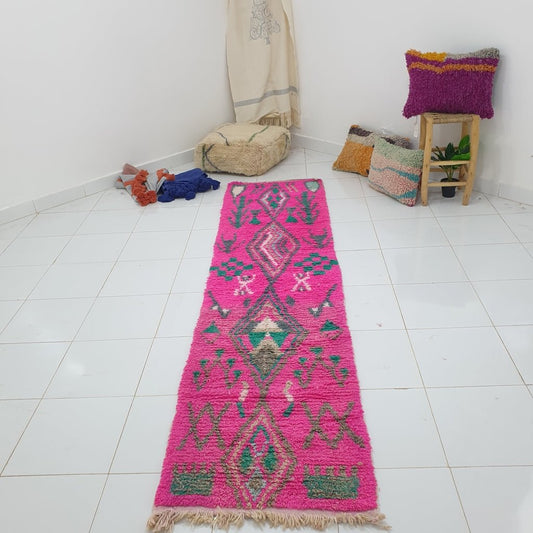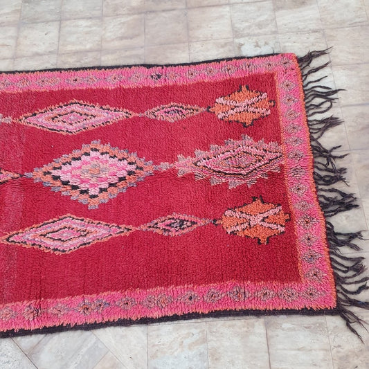 AMYR | 7'8x3'6 Ft | 2,37x1,10 m | Marokkansk VINTAGE farverigt tæppe | 100% uld håndlavet