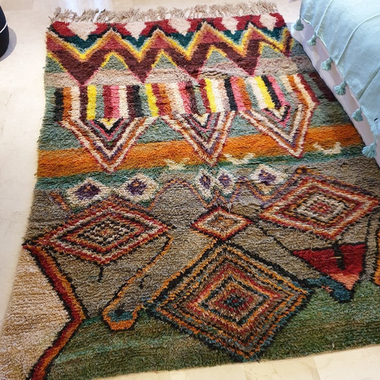 ALOCH | 8'2x4'8 Ft | 2,50x1,45 m | Marokkansk farverigt tæppe | 100% uld håndlavet
