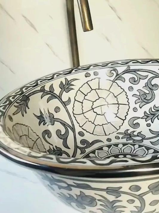 Jerada - Håndmalet keramisk badeværelse vask med sølvkant - elegant, tilpasselig og blyfri - (ETAFS)