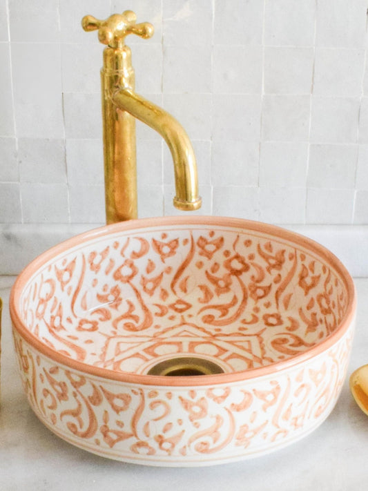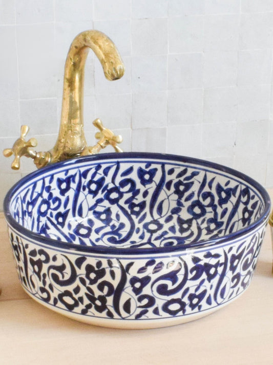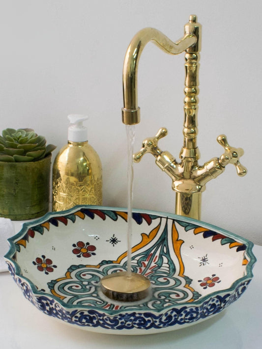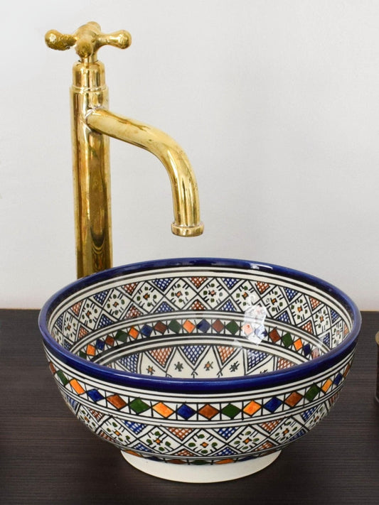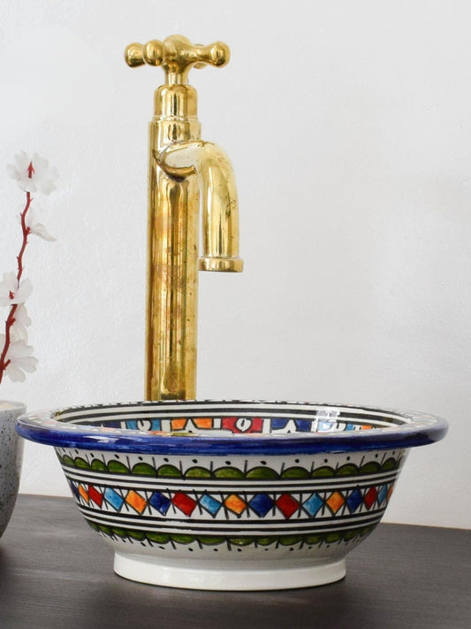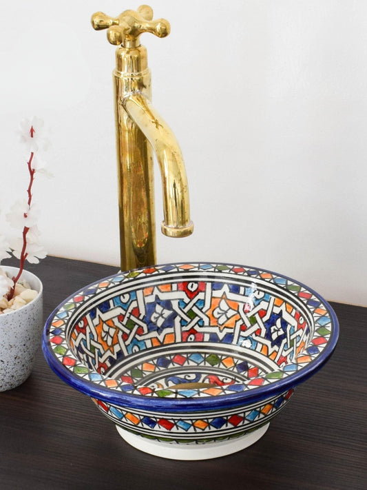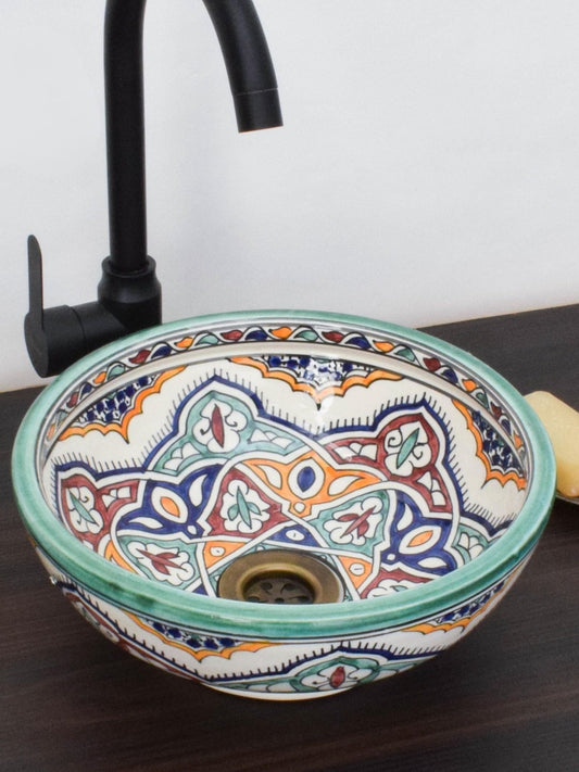 Ihr Badezimmer sollte ein Ort der Entspannung sein, nicht nur funktional. Unsere keramik waschbecken, handgefertigt von marokkanischen Kunsthandwerkern, verbinden deutsche Qualität mit exotischer Kunst, um ein nachhaltige badezimmer zu schaffen. Jedes handgefertigte waschtische ist individuell bemalt, für einzigartiges Handwerk in Ihrem boho bad. Im Gegensatz zu industriellen Waschbecken bieten unsere Keramiken langlebige Materialien und lebendige Designs, ideal für deutsche Haushalte, die Wert auf Nachhaltigkeit legen. Erhältlich in runden, ovalen oder rechteckigen Formen, passen sie in jedes moderne badezimmer. Ergänzen Sie mit unseren messingarmaturen oder badezimmerzubehör.