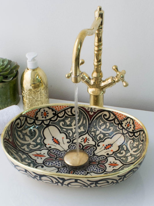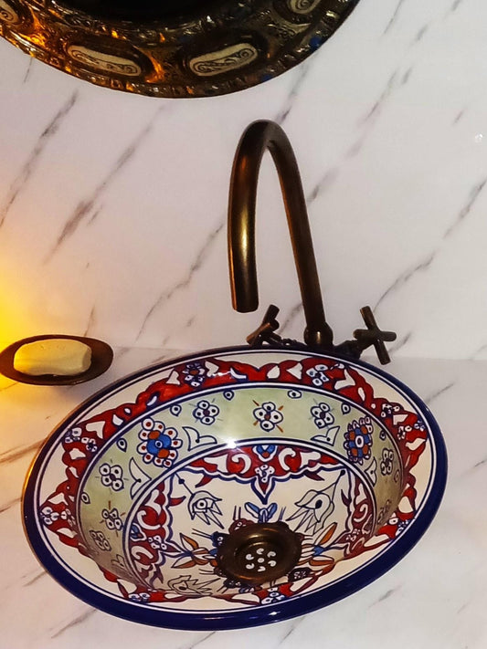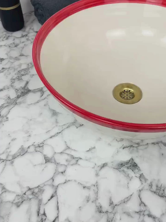 Amsterdam - Handmade Moroccan Oval Ceramic Sink – Red, Black, and White Top Counter Vessel Sink - (ETFS)