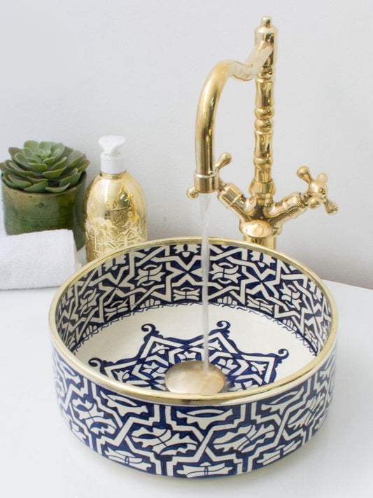 Juzcar - Blaues runde Waschtisch mit Messingrand - handgefertigtes Keramik -Badezimmerbecken - (ETAT)