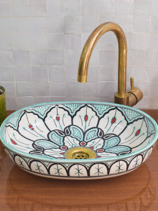 Fez - handbemalte ovale Keramikwaschbecken - Handwerksangestellter Badezimmerbecken - (ETAT)