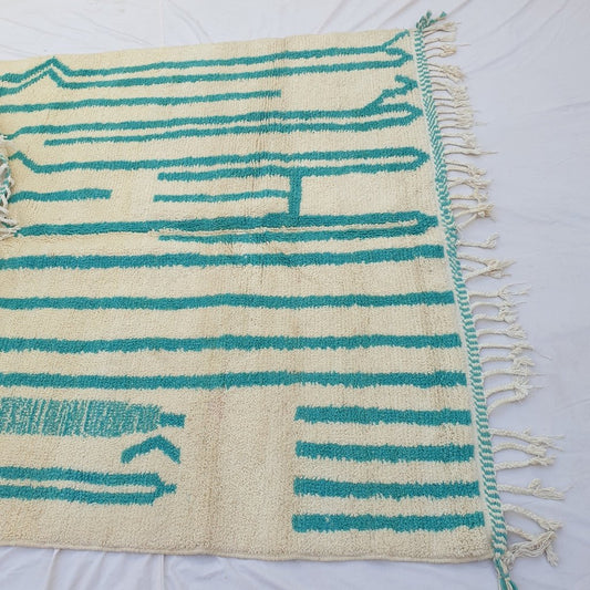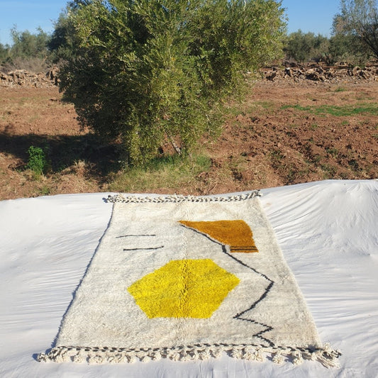 Baska - BENI OUARAIN Marokkanischer weißer Teppich für Schlafzimmer | Marokkanischer Hochflor-Teppich aus authentischer Berberwolle | 5x3'5 Fuß | 151 x 107 cm