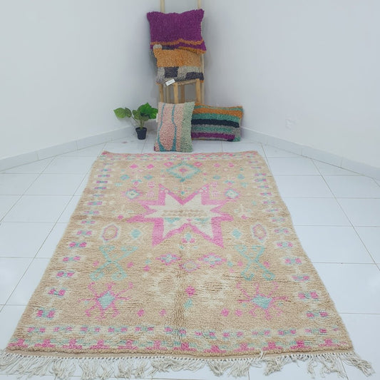 Chabiha - Rosa marokkanischer Teppich 5x8 Boujad | Handgefertigter Teppich aus Berberwolle | 5x8'7 Fuß | 150x260cm