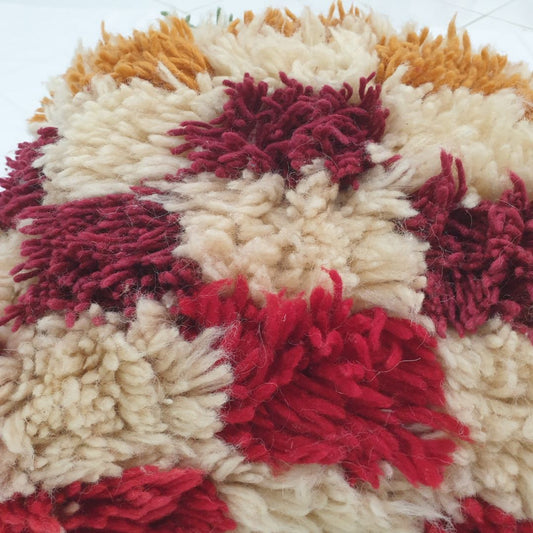 Cream Red Moroccan Cushion Cover – Cozy Beni Mrirt Craft 14x14 inches | 34x34 cm