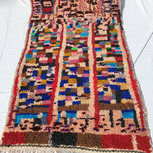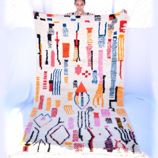 MASSGESCHNEIDERTES BELDIA | 8x6 Fuß | 2,5x1,8m | Marokkanischer VINTAGE-STIL Bunter Teppich | 100 % Wolle handgefertigt