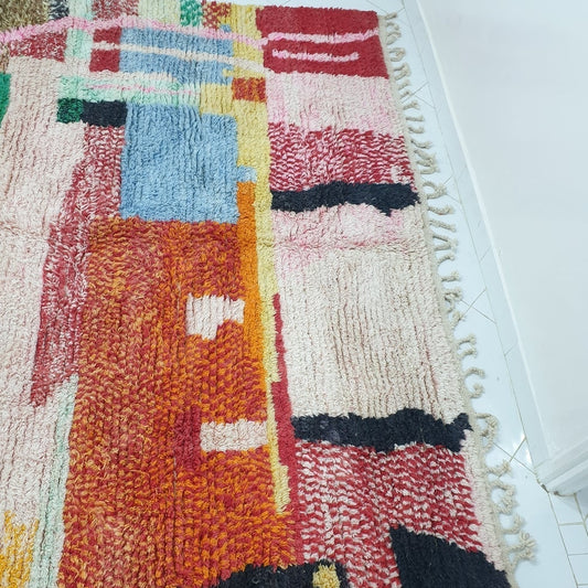 Maßgeschneiderte BIBOUZ | 6x8'5 Fuß | Marokkanischer VINTAGE-STIL Bunter Teppich | 100 % Wolle handgefertigt