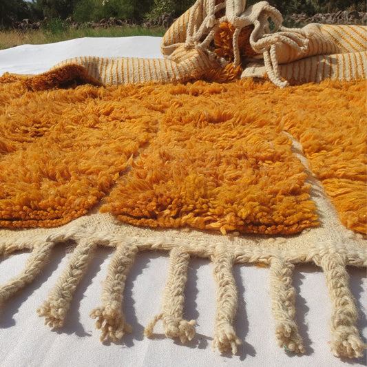 Customized Dehbia | Golden 5x8 Moroccan Rug Soft Beni Ourain | Berber Handmade Wool Carpet