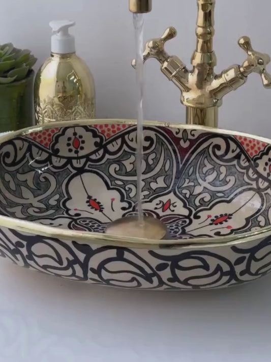 Fez - handbemalte ovale Keramikwaschbecken - Handwerksangestellter Badezimmerbecken - (ETAT)