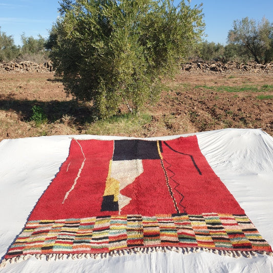Arama - Roter marokkanischer Teppich Boujad 6x9 | Handgefertigter authentischer Berber-Teppich | 9'9x6'3 Fuß | 303 x 193 cm