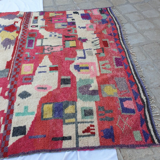 Balfia - Red Berber Moroccan Rug 6x10 | Authentic Boujad handmade Moroccan Carpet | 6'70x10'10 Ft | 204x308 cm